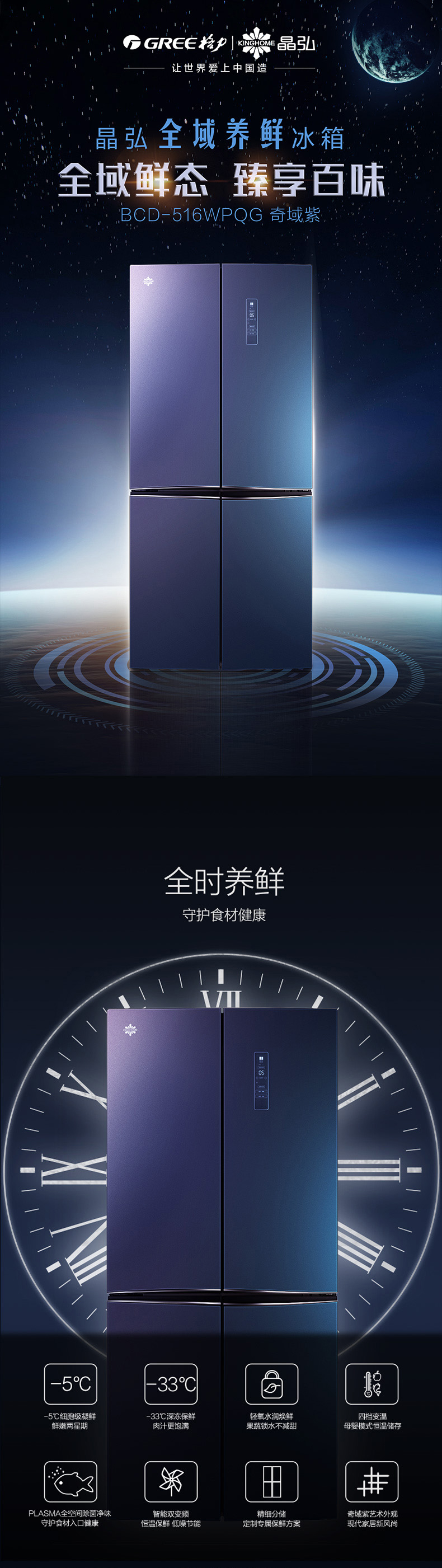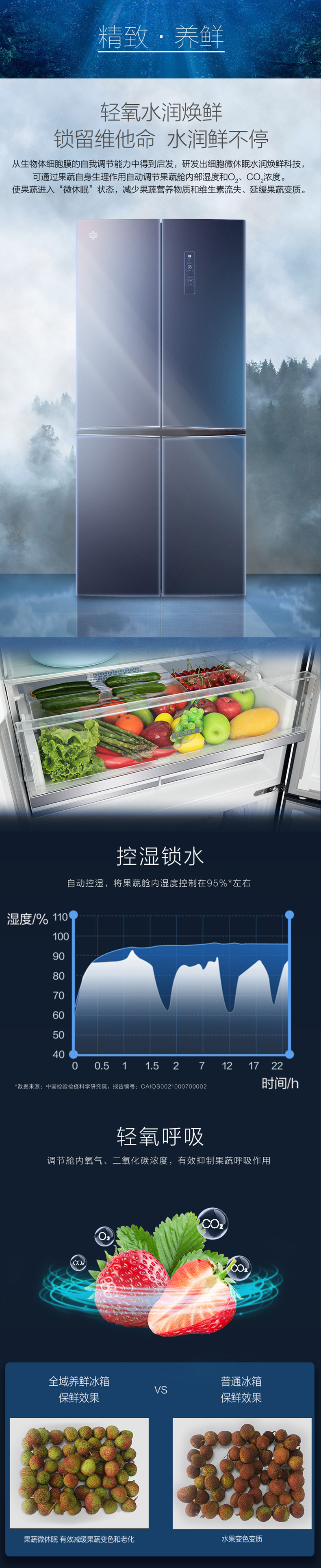 針對(duì)每種食材進(jìn)行精細(xì)化分區(qū),定制專(zhuān)屬保鮮艙,涵蓋肉類(lèi)保鮮、果蔬保鮮、母乳儲(chǔ)存、干貨儲(chǔ)存以及除菌凈味五個(gè)維度,確保每一件食材的新鮮儲(chǔ)存