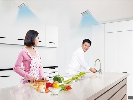 情侶送風(fēng):廚享特設(shè)雙出風(fēng)口,開啟時(shí),兩個(gè)風(fēng)口從不同位置出風(fēng),增加夫妻搭檔烹飪的樂趣。 定點(diǎn)送風(fēng):設(shè)置定點(diǎn)送風(fēng),直吹人體,能快速降低燥熱感,讓您享受清涼烹飪,同時(shí)避免大范圍送風(fēng)產(chǎn)生的能耗。