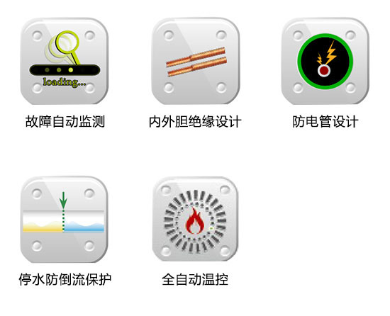 配有漏電開關保護、防電管設計、意外漏電保護、停水防倒流保護、超壓保護等多項保護功能,讓您使用安全無憂。 |