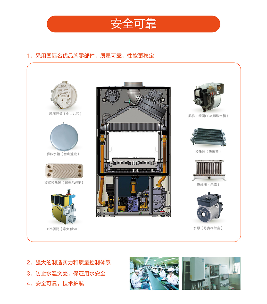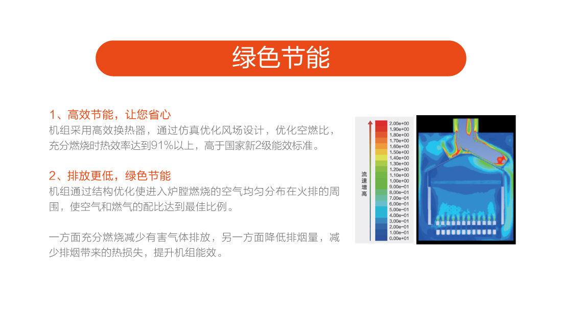 充分燃燒效率達(dá)到90%以上,采用智能水溫調(diào)節(jié),快速出熱水,減少水流浪費(fèi),恒溫±0.5℃以內(nèi)精確控制,生活水溫度35-60℃,采暖水溫30-80℃。