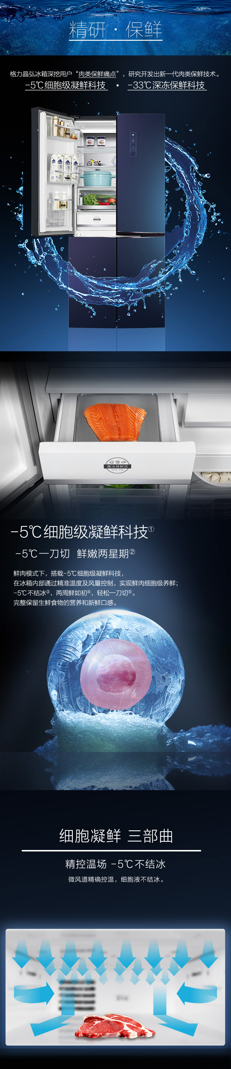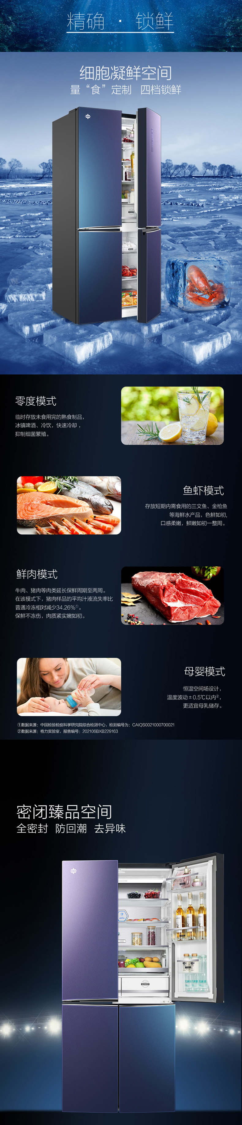 針對(duì)每種食材進(jìn)行精細(xì)化分區(qū),定制專(zhuān)屬保鮮艙,涵蓋肉類(lèi)保鮮、果蔬保鮮、母乳儲(chǔ)存、干貨儲(chǔ)存以及除菌凈味五個(gè)維度,確保每一件食材的新鮮儲(chǔ)存