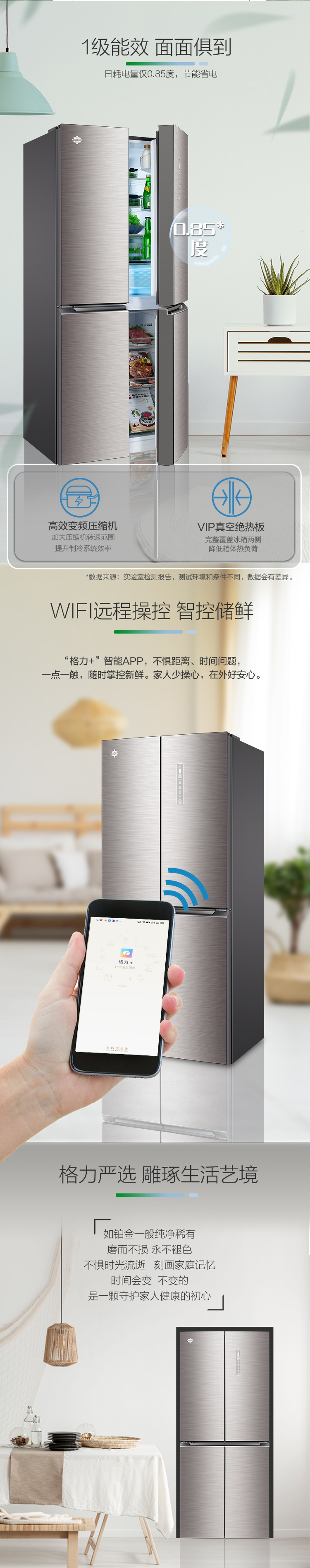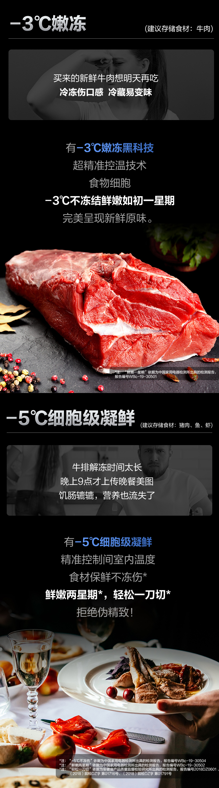 搭載-5℃嫩凍凝鮮科技,鮮嫩兩星期,輕松一刀切。Plasma等離子除菌凈味,除菌保鮮,長久新鮮。4檔保鮮模式,多重角色時(shí)刻新鮮。